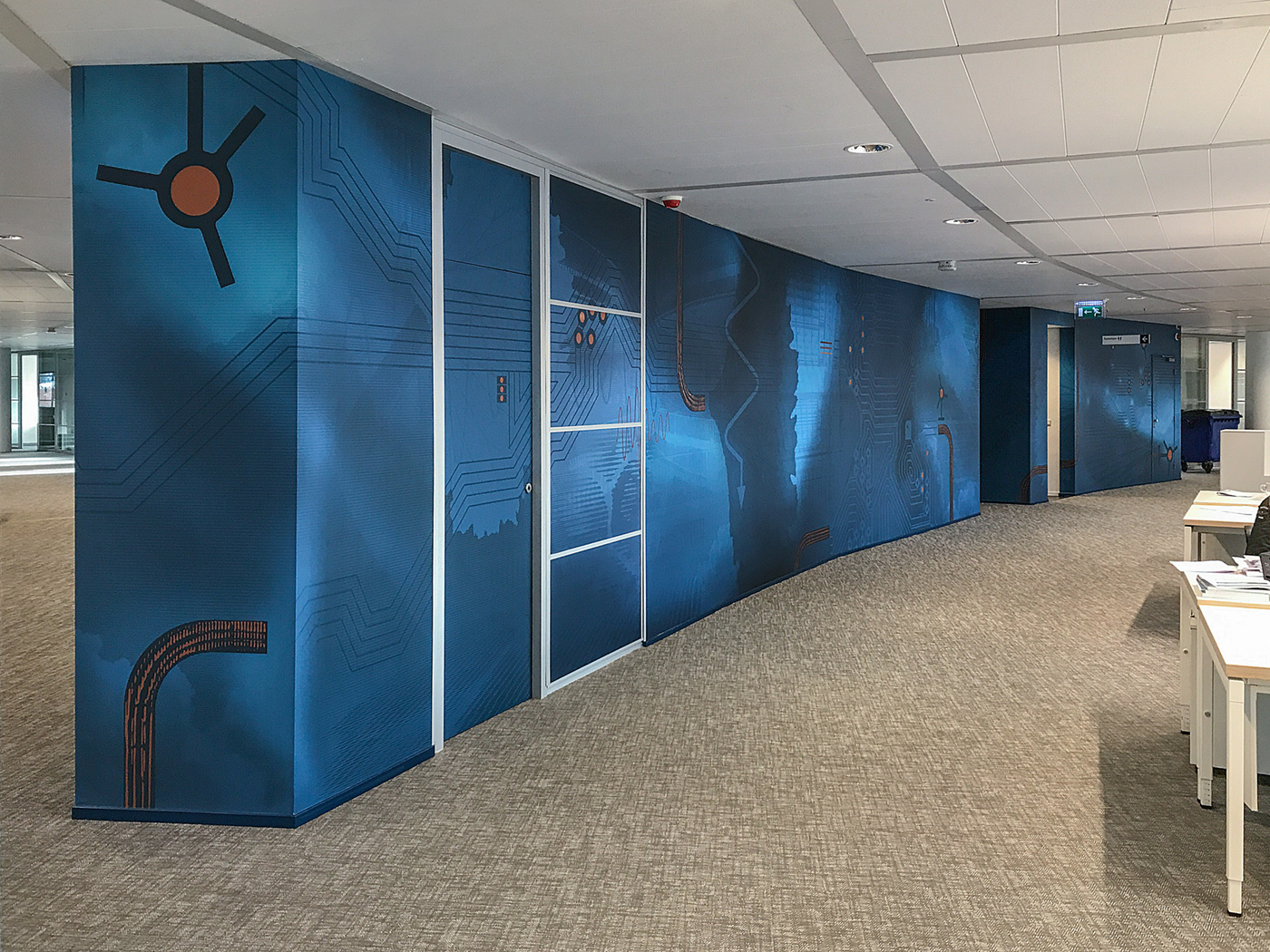 Op aanbeveling van De Twee Snoeken kreeg Studio JAN de opdracht om voor het nieuwe kantoor van ingenieursbureau Nelissen te Eindhoven de identiteit van hun bedrijf in een wandvisual te vangen.Lees verder