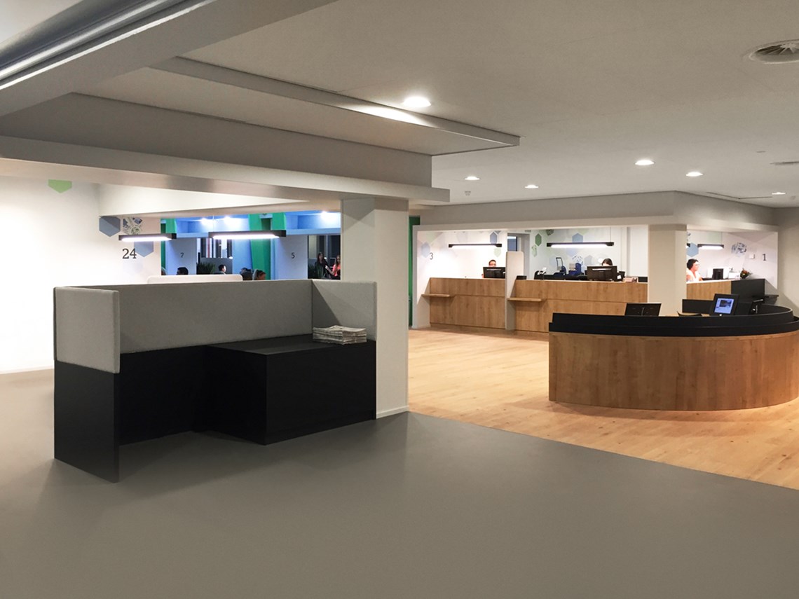 Dit effect wordt nog eens versterkt door de toepassing van pastelkleuren in de tinten groen en blauw. De inspiratie hiervoor vormde het kleurenpalet van De Kathedraal in Nijmegen die door architect Sjoerd Soeters werd ontworpen.